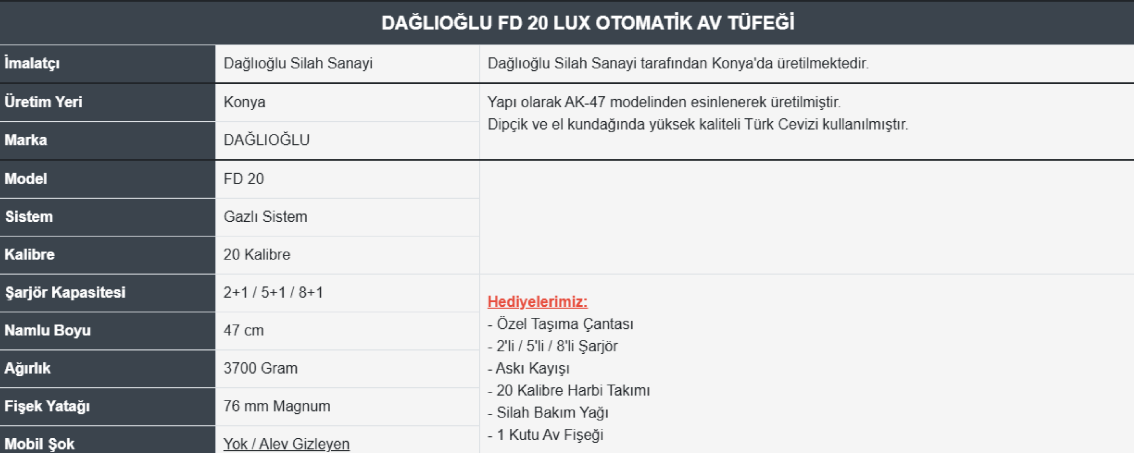 Dağlıoğlu FD 20 LUX Otomatik Av Tüfeği