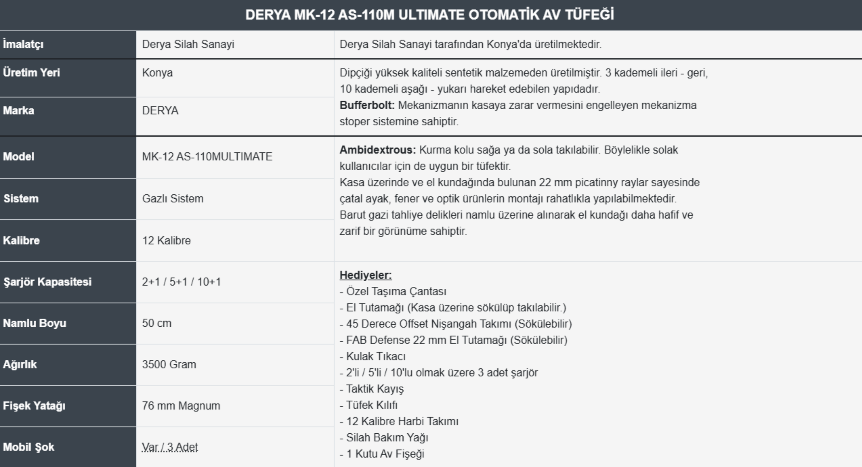 Derya MK-12 AS-110M ULTIMATE Otomatik Av Tüfeği