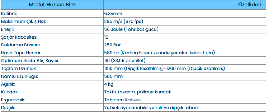 Hatsan Blitz PCP Havalı Tüfek, diğer pcp havalı tüfeklerden farklı olarak seri atış seçeneği vardır. . Hem normal atış yapıp hemde seriye alarak seri tek seferde atış yapabilirsiniz. Tam otomatik sizin için yeterli değilse, Hatsan Blitz Seri Atış PCP Havalı Tüfek de daha fazlası da var. Ayarlanabilir açık nişangahlarla birlikte verilen taşıma kolunu kullanın veya 11 mm ve 22 mm Weaver optik rayına bir dürbün de ekleyebilirsiniz ki bu kadar uzun mesafeli tüfekleri dürbün ile kullanmanızı tavsiye ediyoruz. Daha fazlasına ihtiyacınız varsa Hatsan Blitz Seri Atış PCP Havalı Tüfek yanlarında ve şişenin altında bipod, lazer veya el feneri gibi şeyleri takmak için 3 Picatinny aksesuar rayı vardır. Hatsan Blitz Tam Otomatik-Seri Atış Full AUTO PCP Havalı Tüfek i ters çevirdiğinizde, tetik muhafazasının önündeki alt kısımda renk kodlu manometreyi (sarı-yeşil-kırmızı) göreceksiniz, bu da düşük basınçlı, optimum veya aşırı doldurulmuş olup olmadığını bilmenizi sağlar. Ayrıca, bir dürbün eklemek için üstteki taşıma kolunu çıkarmanız durumunda takılı askı bağlantılarını da bulacaksınız. Hatsan Blitz PCP Havalı Tüfek in gücünü ve tam otomatik heyecanı istiyorsanız, tam anlamıyla sizin için sadece bir havalı tüfek var: Hatsan Blitz.