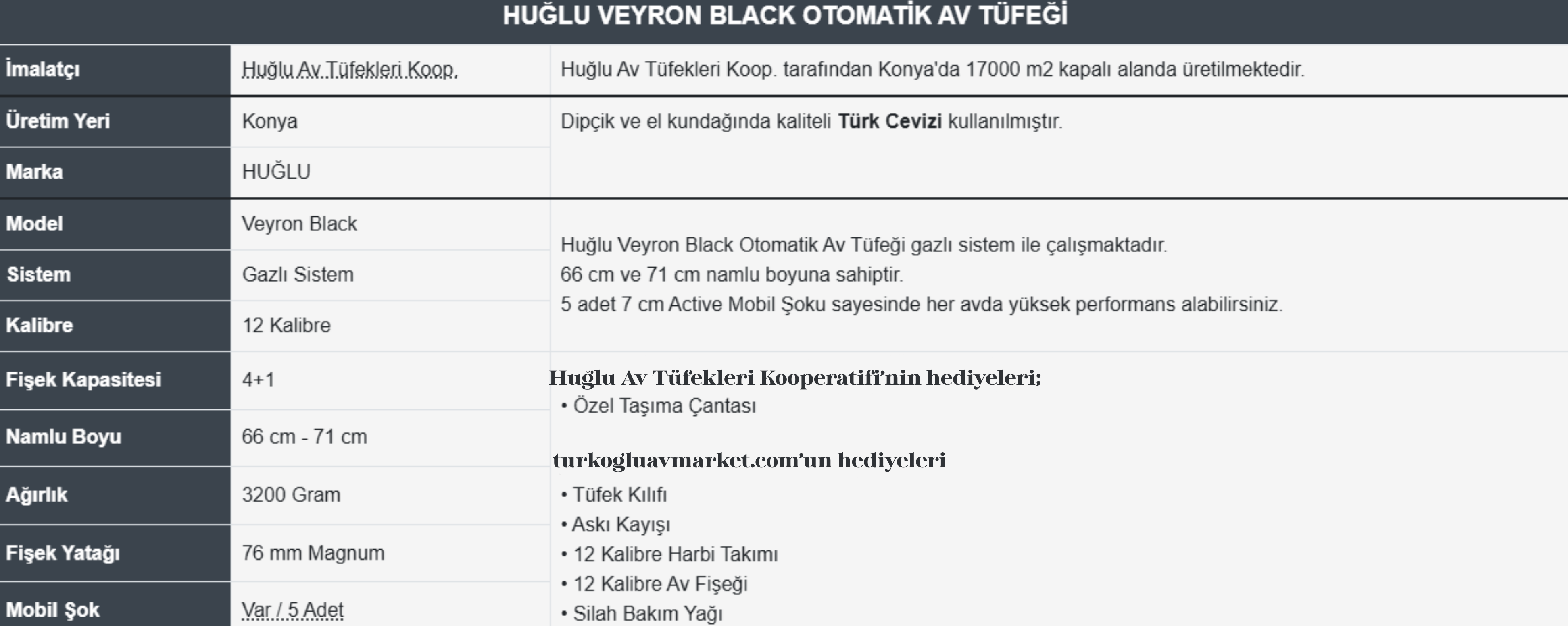 Huğlu Veyron Black Otomatik Av Tüfeği